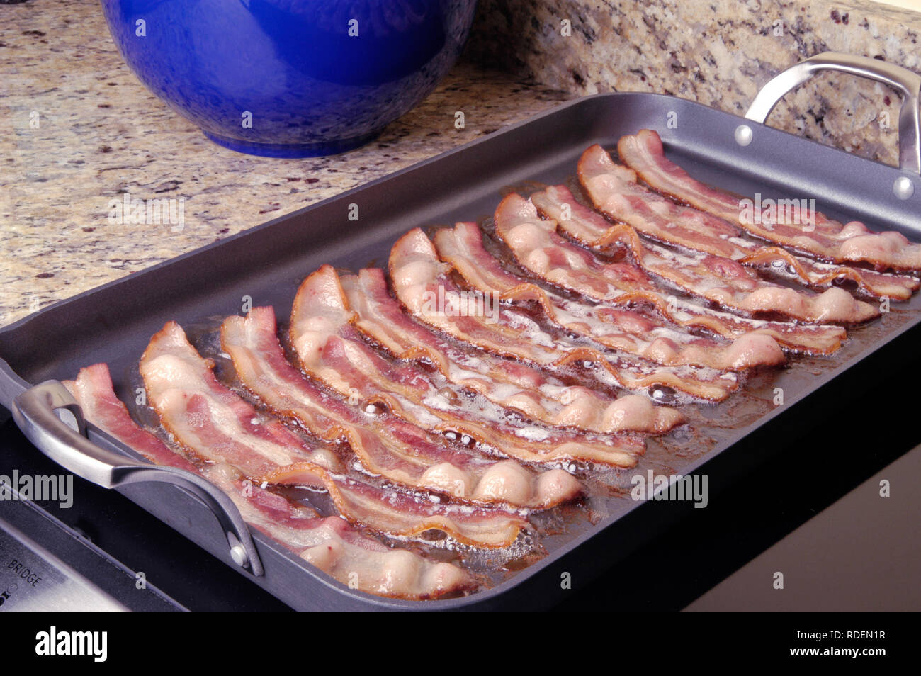 Cooking each side of the bacon strips takes about 5 8 minutes. In essence any griddle that heats to the required temperature will cook your bacon just fine. Two things to keep in mind when cooking bacon on the electric griddle start cold and go up to 325 degrees.